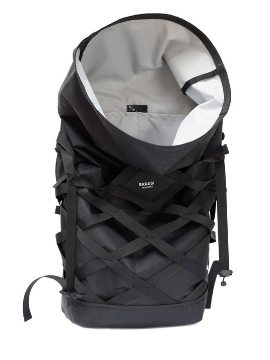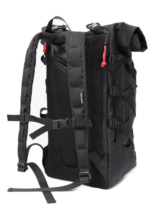 BRAASI の代名詞、X-PAC(R) 素材で造られたフラッグシップモデル。前面に配置した拡張式クロスネットはヘルメット・スケートボード・雨具まで収納可能。サイドの PC スロットは MacBook