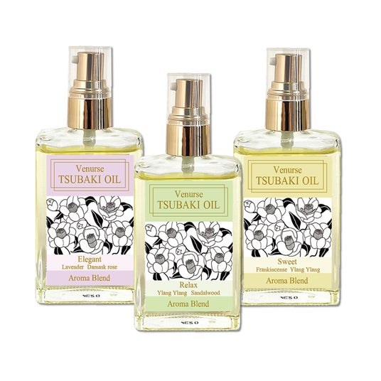ツバキオイル アロマブレンド 3種セット(ギフトボックス:エレガント・リラックス・スイート各50ml)