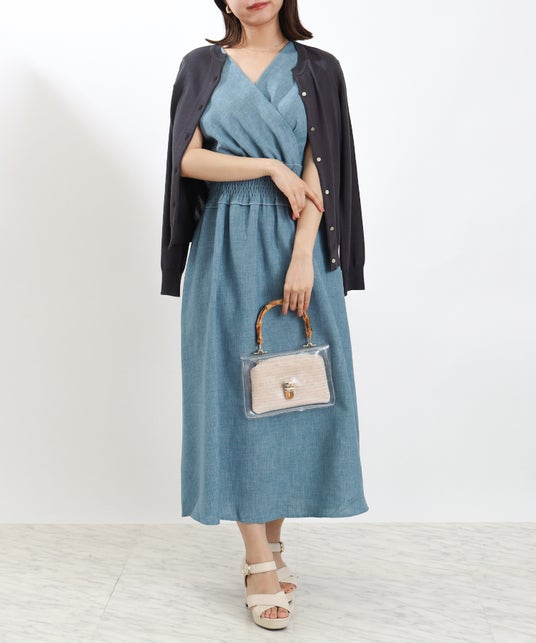 抜き衿デザインのカーディガンは、14ゲージの上品に映える細やかな編地を採用することで「オフィスシーン」での着用もでき、カジュアルな透けやシワになりずらい素材感が「おでかけ」などのカジュアルシーンでも取り入れることができます。
