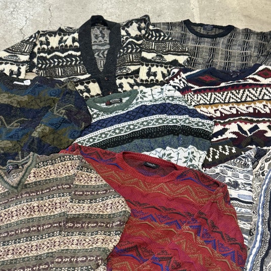 【ニット・スウェット】:90sヴィンテージのロゴ入りスウェットや柄ニットなど、トレンド感あるアイテムが豊富。