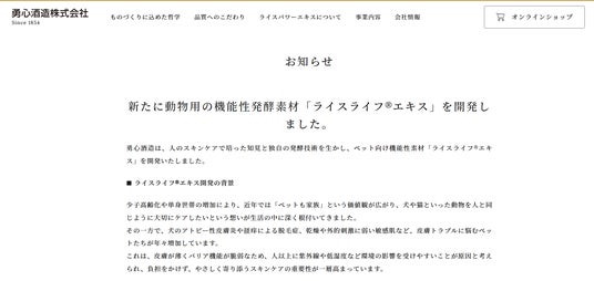 勇心酒造株式会社 コーポレートサイト掲載ページ(公式通販サイトでも同内容を公開)