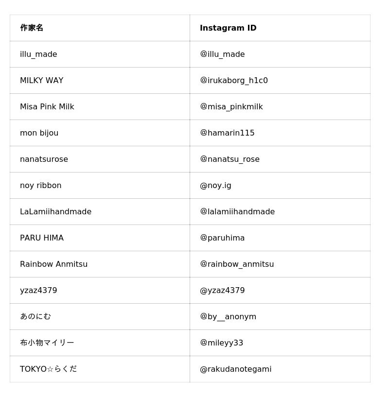 【参加予定作家 / Instagramアカウント 】