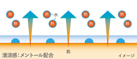 熱を逃がしてひんやりが続く♪気化熱の作用で肌の熱(ほてり)を逃がし続けて、冷感シートの冷却効果が持続します。