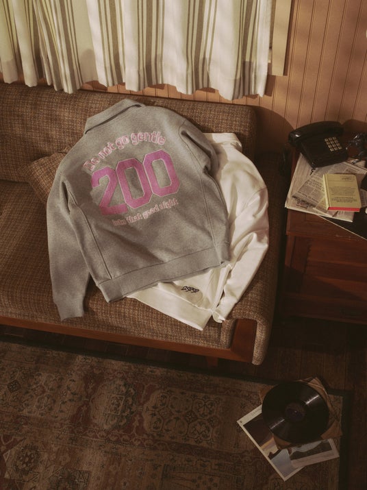 グレーカラーは、フロントの胸元にワンポイントで「TwO hundRED」を刺繍。大きく施されたバックのTwO hundREDのロゴ「2(ハート)(ハート)」は、