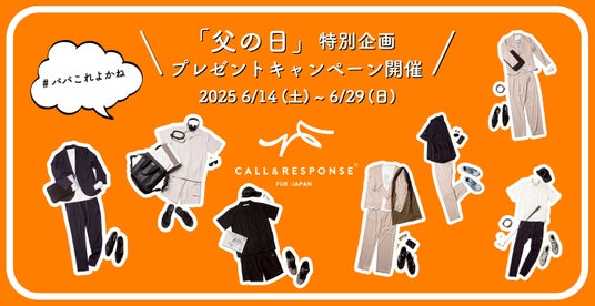 CALL&RESPONSE株式会社(本社:福岡市博多区、代表取締役:長江正勝)が運営する、「着ない時間まで、デザインした服。」を開発するパパにおすすめしたいブランド「CALL & RESPONSE(コールアンドレスポンス)」は、「父の日」特別企画として、#パパこれよかねプレゼントキャンペーンを実施します。