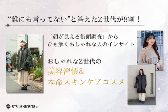 そこで、ファッション・ビューティ分野のリアルトレンドを発信する「スタイルアリーナ」ではZ世代の女性たちの“静かなる信頼”をよせる美容習慣とスキンケアコスメ事情を探るため、おしゃれに敏感な若者が行き交う表参道で街頭調査をインタビュー形式で実施。
