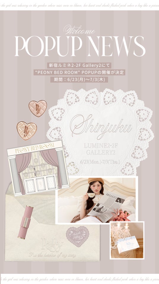 株式会社Ivy(アイビー)(所在地:東京都渋谷区、代表取締役社長:イ・ジヘが展開するコスメブランド「Peony(ピオニー)」が、期間限定POPUP STOREを6月23日~7月3日に新宿LUMINE2-2Fにて開催いたします。