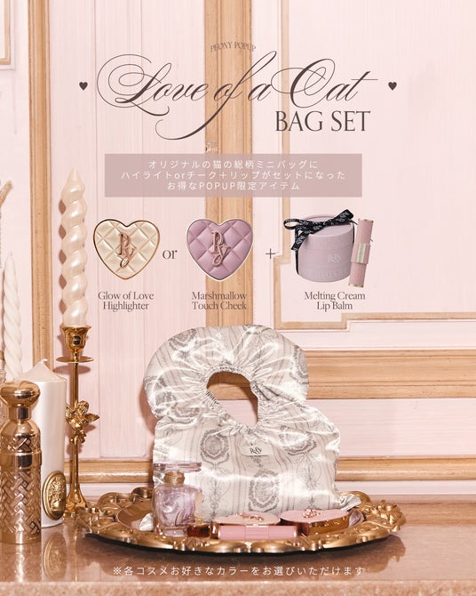 ■先行発売「LOVE OF A CAT BAG SET」限定デザインの猫ちゃん柄サテンバッグに
