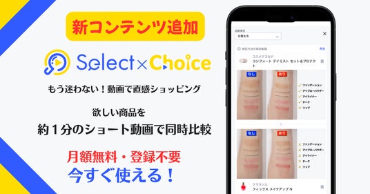 子育てや家事に忙しいママ・パパ世代の「選択疲れ」を解消すべく、動画で比較できる新しいショッピング体験『セレクトチョイス(Select×Choice)』にリクエスト多数の新コンテンツが仲間入り!