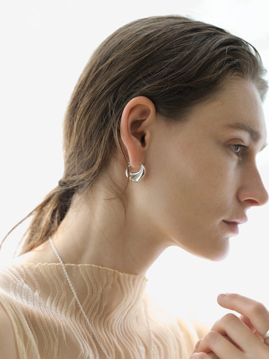 「フラグメントシリーズ」は、無駄をそぎ落としたミニマルなシルエットが魅力で、日常に洗練された印象を添えます。シルバー925を贅沢に使用したフラグメントフープピアスは、洗練されたタイムレスなスタイルが特徴で、職人の手仕事への深い敬意が表現されています。素材はリサイクルシルバーを使用しており、環境にも深い配慮をしています。
