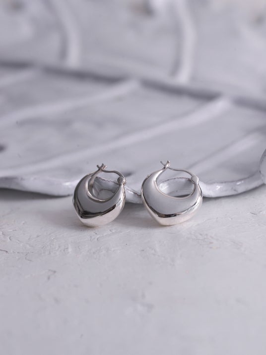 どんな時でもオープンなハートをもつメッセージを込めた、オープンハートフープピアス。ブランドを象徴するデザインモチーフである、クラシカルなハートを現代の感性でアップデートしています。女性らしい繊細さと、シルバーのボリューム感を両立させたデザインは、職人の手仕事への深い敬意と、ブランドのクリエイティブへの強いこだわりが表現されています。