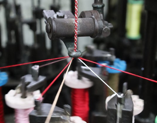 FUGAのスニーカーに使用されている靴紐には、 奈良時代から受け継がれる伝統技法「くみひも(組紐)」を採用しています。