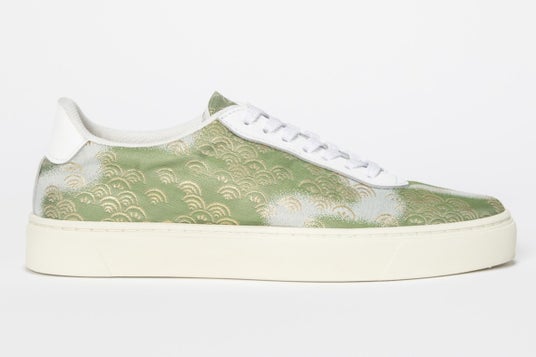 日本の伝統美と現代技術の融合:西陣織金襴カップソールスニーカー。