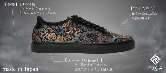 株式会社さくら(所在地:京都府京都市、代表取締役:浅井政則)は、京都の伝統工芸「西陣織」を使用した新たなスニーカーブランド「FUGA(フーガ)」を、2025年7月12日(土)より販売開始します。