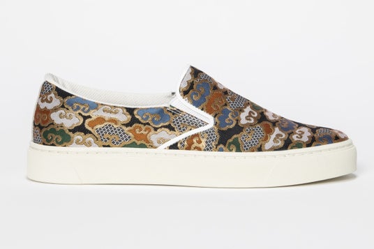 日本の伝統美と現代技術の融合:西陣織金襴スリッポンシューズ。