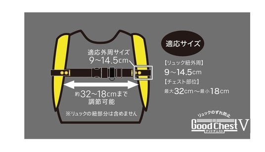 『Goodチェスト5』では、視認性を高めるリフレクター素材と、片手でスムーズに着脱できるYKK製ワンタッチバックルを新たに採用し、日常のあらゆるシーンにフィットする、進化したズレ防止ベルトが完成しました。