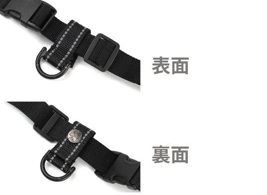 取付方法はとてもシンプルリュックのショルダーストラップに通して調整しホックで止めるだけ。面倒な手間は一切不要です。