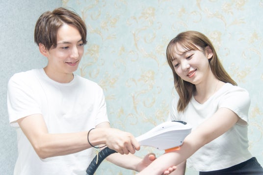 一緒に施術を行うことで一人では手の届かない箇所への施術も行えます。