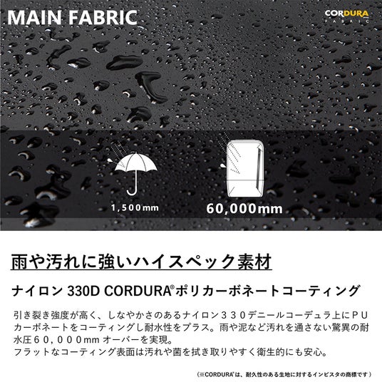 【独自加工による高い耐水性】耐水圧60,000mm以上を実現。雨の日や雪の日でも安心して使える高い耐水性を誇ります。