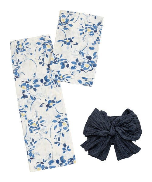 WEB通販サイトで販売中の"浴衣5点セット"と同額(¥11,990(税込)/¥14,990(税込))で、お好きな柄の浴衣とお好きなカラーの帯をお選びいただけます。