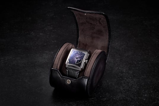 ブランド誕生20周年を記念して、「SEVEN WINDOWS」雪平ブラックグラデーションダイアルをご購入のお客様全員に、雪平ブラックグラデーションダイアルをイメージして、革職人がひとつひとつ手作業による「パティーヌ仕上げ」を施した旅行などにも便利なオリジナルウォッチレザーケース(非売品)を進呈いたします。
