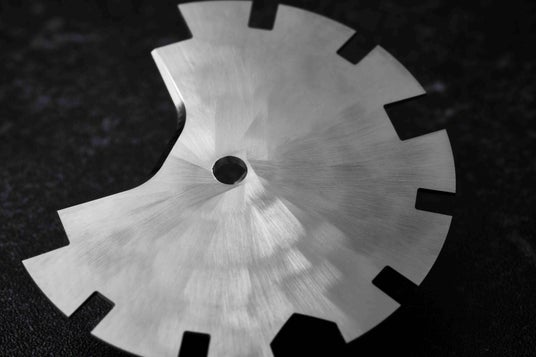 MINASEウォッチを構成する最も特徴的なパーツであるダイヤルリング(文字盤部のインデックスパーツ)は仕上げ研磨後にイオンプレーティングでオールブラックにしてから、ブランドシンボルであるドリルマークのみを銀色に輝かせるため追加で研磨加工をしています。