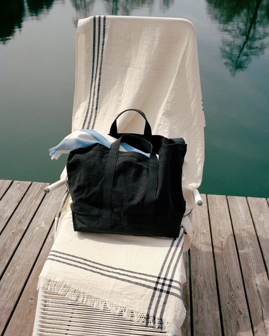 実用的なビーチバッグは、 390GSMのヘビーウェイトキャンバスを使用し、コットンを織り上げたうえでガーメント染めにて仕上げられています。大容量設計で、ジップ付きの内ポケットを備え、ビーチでの長時間の滞在に必要なアイテムを収納可能。ハンドルとショルダーストラップの両方を備え、持ち運びやすさにも配慮されています。