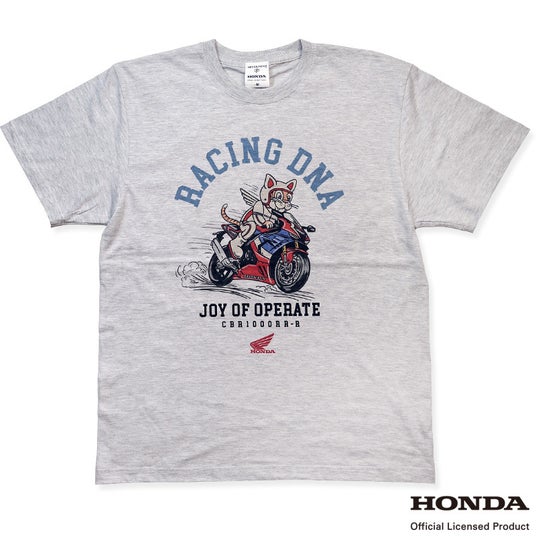HONDA WINGのように翼が生えたレーサーキャットがサーキットを駆け抜けるヴィンテージでカレッジライクな可愛いデザインがポイントのこの夏ぴったりなリラックスシルエットのT-SHIRTS。