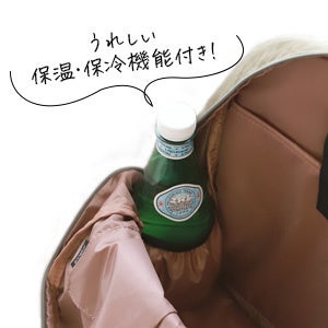 撥水機能もある高密度かつ軽量のナイロン生地を採用し、たった約325gの驚きの軽さを実現。底板付きでしっかりと自立し、コンパクトながらボトルホルダーやポケット10個も完備した忙しいママに嬉しい設計に。