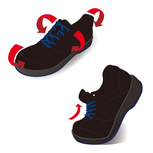 調整用シューホールや踵抜け防止クッションなど、着用者の安全・快適のための機能を多数有しています