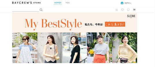 「ベイクルーズストア」(ベイクルーズ)は、サイトのデザインや商品画像が「おしゃれで見やすい」と定評がありました。今シーズン、イチ推し商品の特集やブログ、ユーチューブなどのコンテンツも豊富でスタッフのスタイリング紹介やレビュー数も多く、EC上で商品の魅力を伝える施策が充実しています。