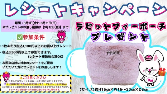 株式会社Trust(本社:大阪府大東市、代表取締役:多川 一馬)が運営するアウトレットストア「Dream market」は、8月中のDream marketでの税込み3,300円以上の購入レシート(※条件あり)を購入日とは別日の来店時ご持参いただくと、プレゼントをお渡しします。