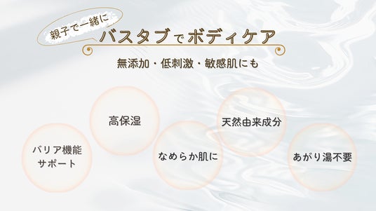 肌荒れや乾燥を防ぎ、親子で一緒に肌と心を癒すバスタイムをお楽しみください。