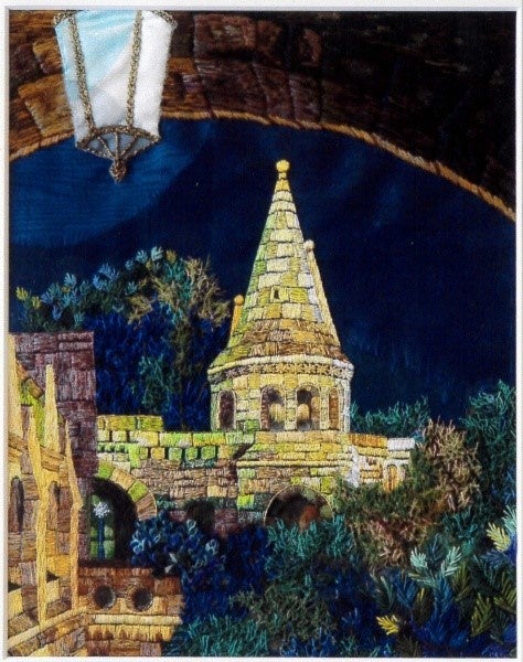 世界遺産にも登録され、ハンガリーで最も美しい村と称されるホッロークー。石畳が続く静かな街並み、どこか懐かしさを感じさせる家々の佇まい…さらに、観光客にも人気の首都ブダペスト、その中でもブダの丘から望む絶景や、ハンガリー各地ののどかな風景など、思わず深呼吸したくなるような情景が、刺繍の中に広がります。まるでハンガリーを旅しているかのようなひととき。針と糸で紡がれた風景の中に、その地を愛した作り手の眼差しと個性、記憶が息づいています。