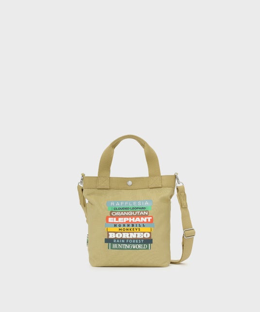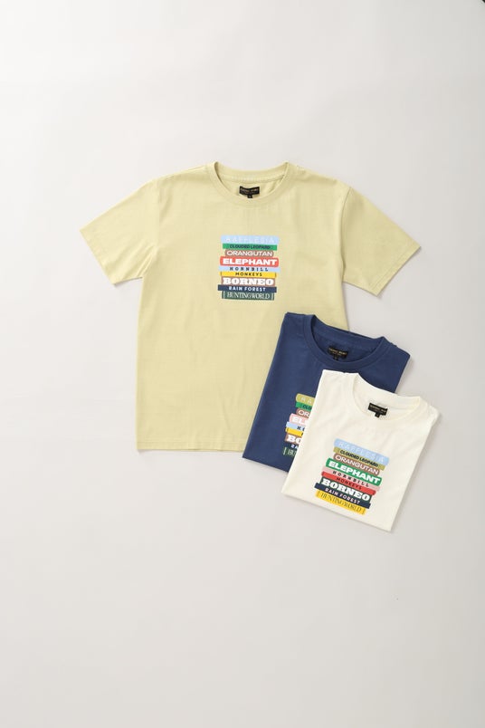 ボルネオ島をテーマに描いたイラストは、ボルネオに棲息する象をはじめオランウータンやラフレシアなどの動植物の名称を、書籍の背表紙に見立ててポップなタイポグラフィーで表現したもの。ボルネオ島をフィーチャーしたデザインを進めていく中で、関連する書籍を通じて深掘りしていく際に、机に積みあがった資料や図鑑をふと見た時の様子をアートワークにしました。このデザインを通して、ボルネオ島に棲む動物たちを調べるきっかけになればと願い、アカデミックなテイストのデザインで可愛く仕上げられています。