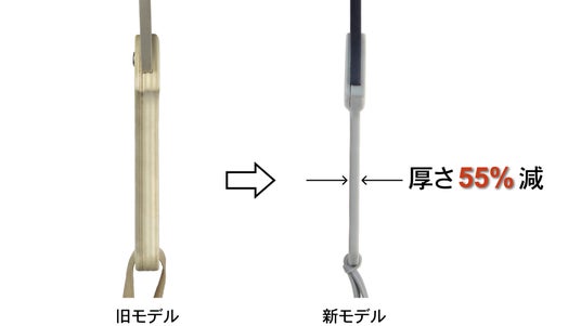 2. 厚み55%カットの薄型化