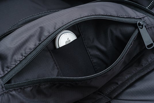 さらにルーム内前面に大型のジッパーポケットも配置。かさばる充電ケーブルやマウスも収納可能です。ガジェットルームを身体側に配置し、重心を内側へ向ける事で、重い荷物でも後ろに引っ張られにくく、体への負担を軽減します。