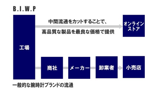 今回のプロジェクトではブルーインパルスの日本製GMT時計を4万円台から実現!この価格で提供できる理由は従来の腕時計販売の販売手法を見直し、企画から生産・販売までを一貫して行うビジネスモデルを採用したからです。中間マージンの削減によって、最良な価格で提供します。
