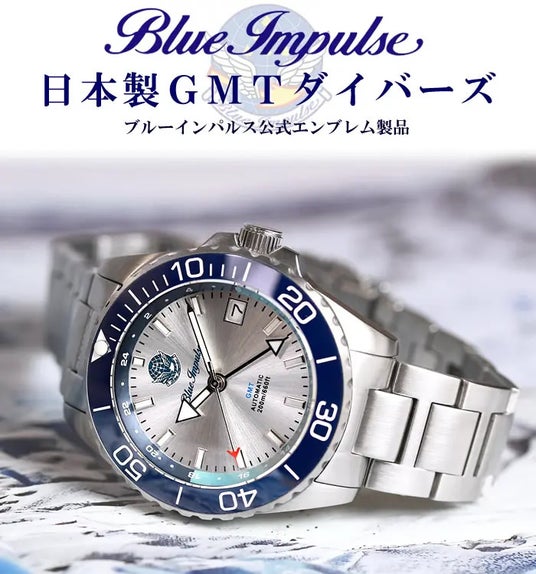 ブルーインパルスの魅力を詰め込んだプレミアム仕様の日本製GMTダイバーズ自動巻き腕時計!品質に一切の妥協を許さない、腕時計のプロ集団が手がける時計プロジェクト第三弾!