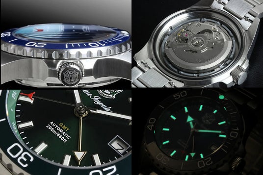 見えない部分である裏蓋へのエンブレム刻印、光の当たる角度によって表情を変える美しいサンレイダイヤル、経年劣化のしにくいセラミックベゼルを採用、200m(660フィート)の防水性能を備え、ダイバーズウォッチとしての防水基準を満たした本格仕様の20気圧防水ダイバーズウォッチ、視認性と高級感を両立したサファイアガラスには内側に無反射コーティングを施し、微カーブガラスを採用し立体感と高級感を演出、ムーブメントは日本製「TMI NH34A」を搭載、近年注目度の高い時計の機能である「GMTを搭載」、インデックス、短針・長針には蓄光加工を施し、夜間や暗い場所でも高い視認性を確保、などのこだわり満載の1本に仕上がりました!詳細は是非Makuakeプロジェクトページにてご確認くださいませ!!