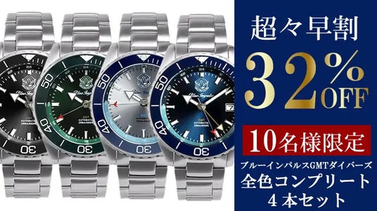 【超々早割30%OFF】ブルーインパルス日本製GMTダイバーズ◆各色限定20本