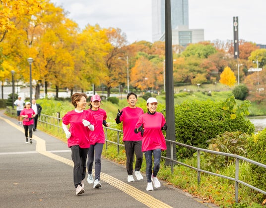そしてこの度、活動の一環として、東京・皇居周辺での「乳がんのない世界へRun & Walk 2025」を11月11日(火)に実施いたしました。当日は、多くの賛同者が集まり、乳がんに関する、啓発と支援の輪を広げる機会となりました。ELCの社員をはじめ、三菱地所株式会社、一般社団法人JBCRG(Japan Breast Cancer Research Group)、日本航空株式会社(以下、JAL)など、パートナー企業や団体からボランティアを含む200名以上が参加し、乳がんの早期発見や正しい知識の啓発、研究支援の重要性について理解を深めながら、Run & Walkを通じて、「乳がんのない未来」への想いを共有しました。