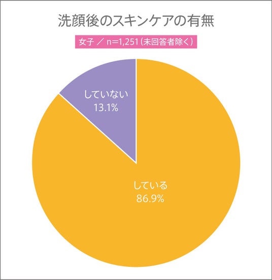洗顔後のスキンケアの有無について、男子は約6割で、“している”と答えた高校生がわずかに多いという結果に。女子は、8割以上がスキンケアをしていることがわかりました。
