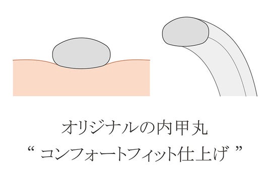 新作モデルは自社で開発したオリジナルの内甲丸 “コンフォートフィット仕上げ“ を採用し、指当たりの優しい着け心地になっております。