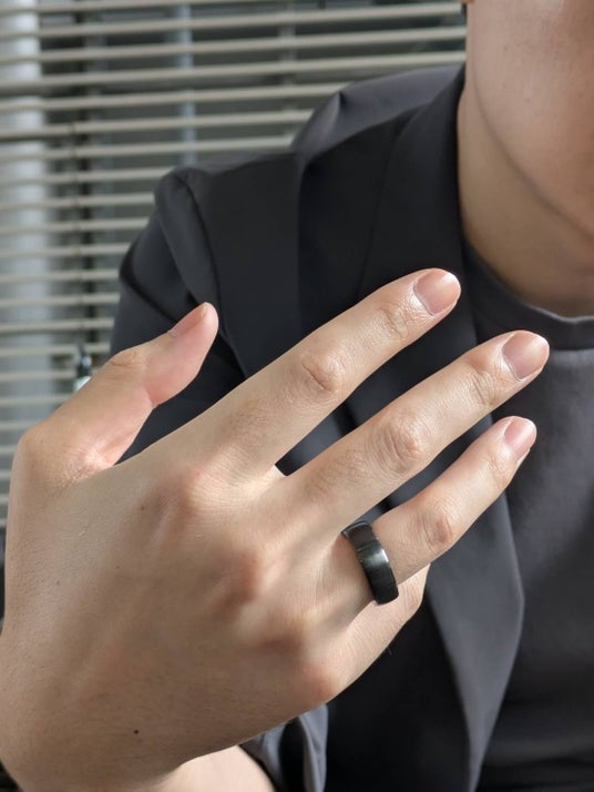 名刺交換ではないカジュアルな場で差をつける「ファッション名刺」。男性の指元に映えるマットブラックのセラミック製スマートリング「HelloRing 2 Black」で、新しいプロフィール共有体験を。