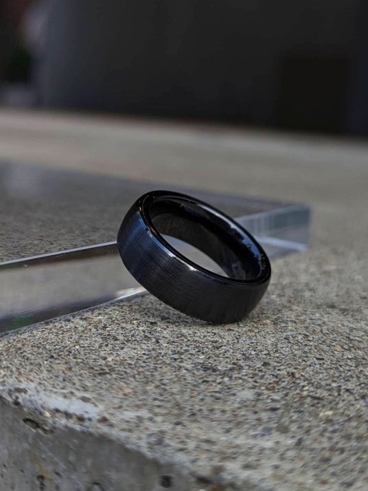 素材には高強度セラミックを採用。一般的な金属素材と比較して傷がつきにくく、日常使いでの耐久性に優れています。また、シックでマットなブラックカラーは、男性の指元に洗練された高級感を演出し、ビジネスシーンからカジュアルまで幅広く対応します。