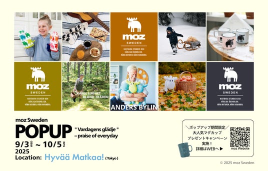 北欧カルチャーを発信する多目的店舗「Hyvaa Matkaa!(ヒュバ・マトカ)」にて、期間限定moz Swedenポップアップ・コーナーを展開いたします。これを記念して、期間中に店舗でmoz商品をご購入いただいたお客様を対象に、先着15名様に大人気のmozマグカップがもらえるプレゼントキャンペーンも実施いたします。