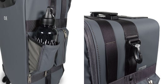 側面には収納式ボトルポケットや小物用ファスナーポケットを装備。