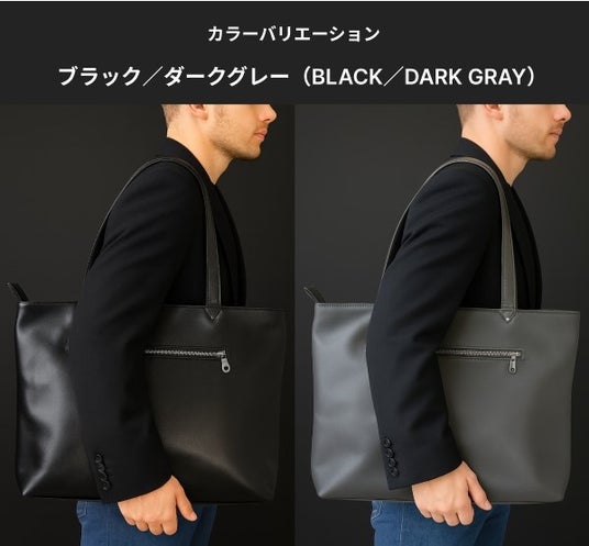 ● ジェンダーレスな2カラー展開 ブラック(裏地:ベージュ)ダークグレー(裏地:ブラック)モノトーンを基調としたミニマルなデザインは、スーツスタイルにも、私服ベースのビジカジにも馴染みます。性別を問わず持てる「ジェンダーレスデザイン」として、パートナーや家族とのシェア使いも想定しています。