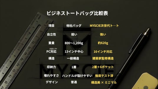 プロジェクト名:『MYSCIE 次世代タフトート|壊れにくい構造美 × 自立設計 × 軽量620gのビジネスバッグ』